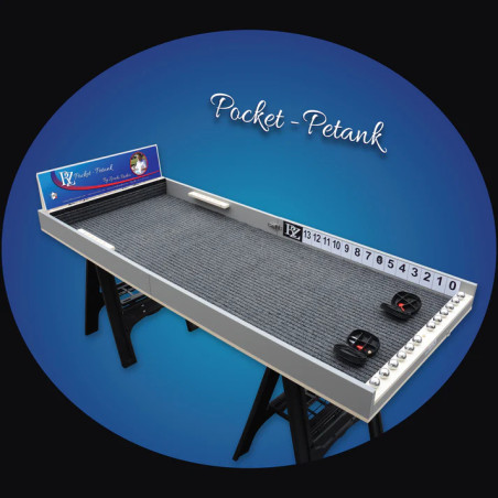 AlloFiestaLoc propose une location de Pocket-Petank par Rz Event pour seulement 60 euros/jour, une expérience innovante qui vous permet de jouer à la pétanque en intérieur. Ce concept unique est parfait pour des événements en famille, entre amis, ou lors de vos soirées d'entreprise. Grâce à sa conception compacte, cette table de jeu se range facilement et convient à tous les types d'espaces.
